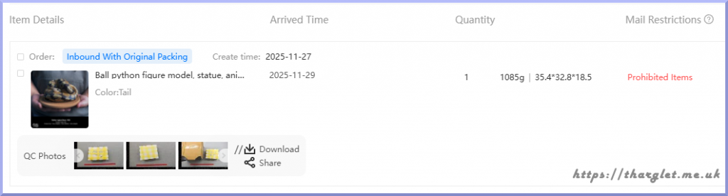 See the red writing on the right? Yeah, that restriction stops you from shipping an item out. Oops. And that’s a lot of money to spend on something I couldn’t return and potentially ship out. After writing an email to support, thankfully they changed the restriction and allowed me to ship out. I wasn’t worried about customs issues personally – on an x-ray it would appear as an inorganic “poo”, and anyone inspecting it for more than two seconds would know it was a resin model. However the proxy was nervous about it, so slapped it with the most restrictive restriction… which still allowed EMS, so EMS it went. Didn’t even hesitate to clear Chinese or British customs. Glad to know I can still import PU resin.